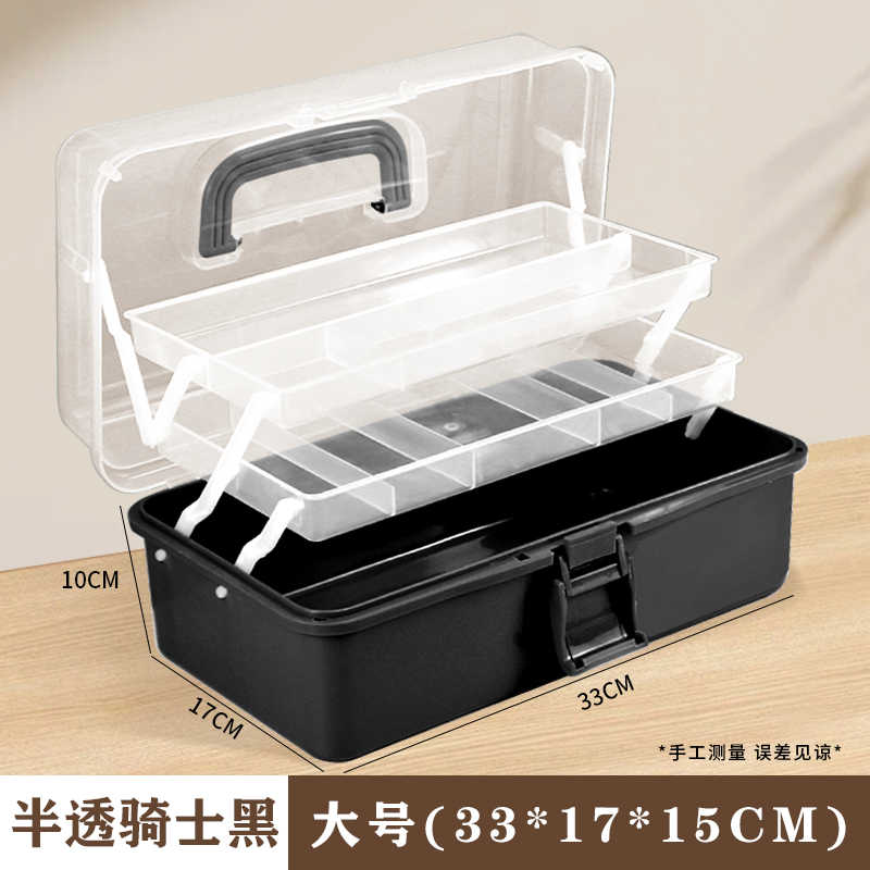 > 美术工具箱三层国画收纳盒美术生画画专用透明折叠画材收纳盒子美术生工具收纳盒书法收纳盒颜料美术生工具箱